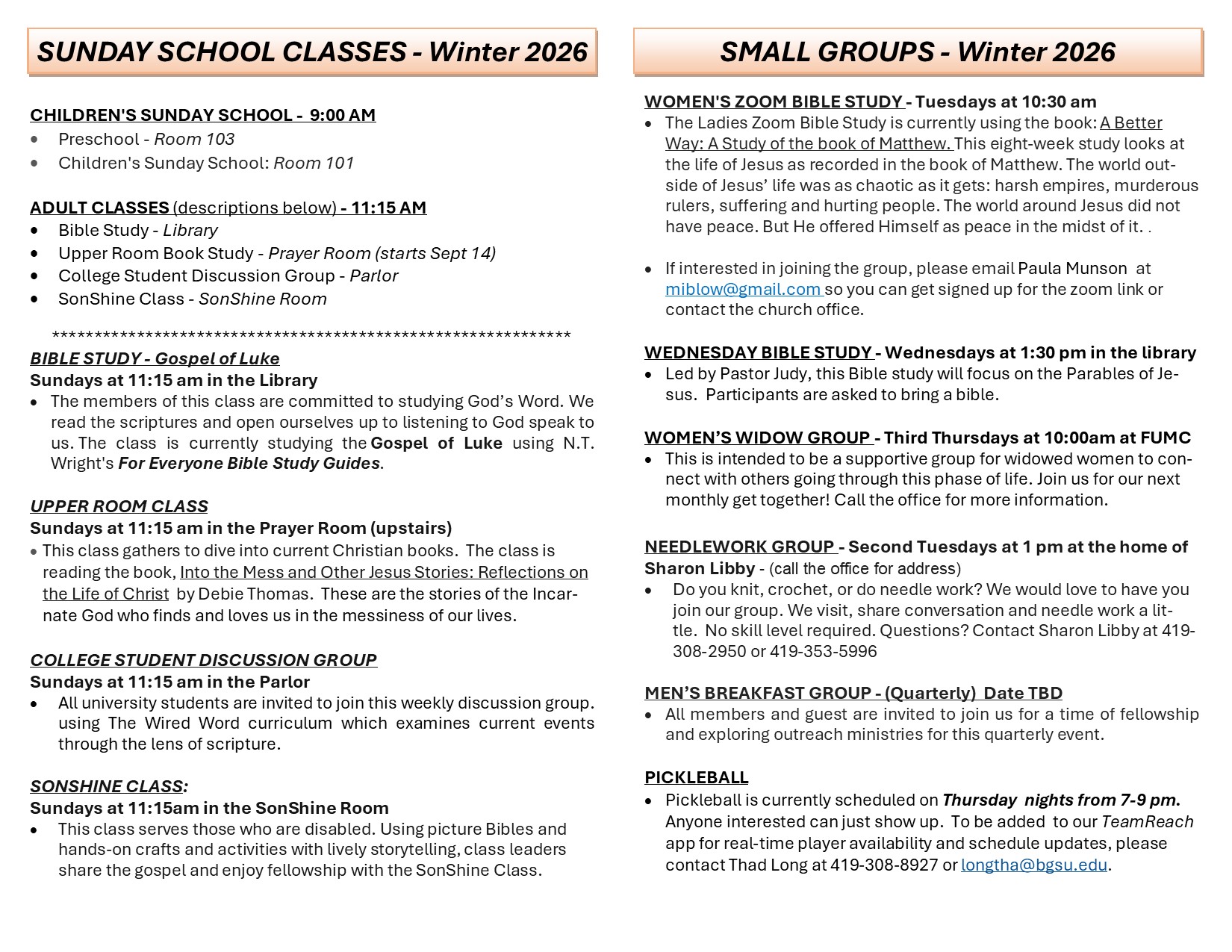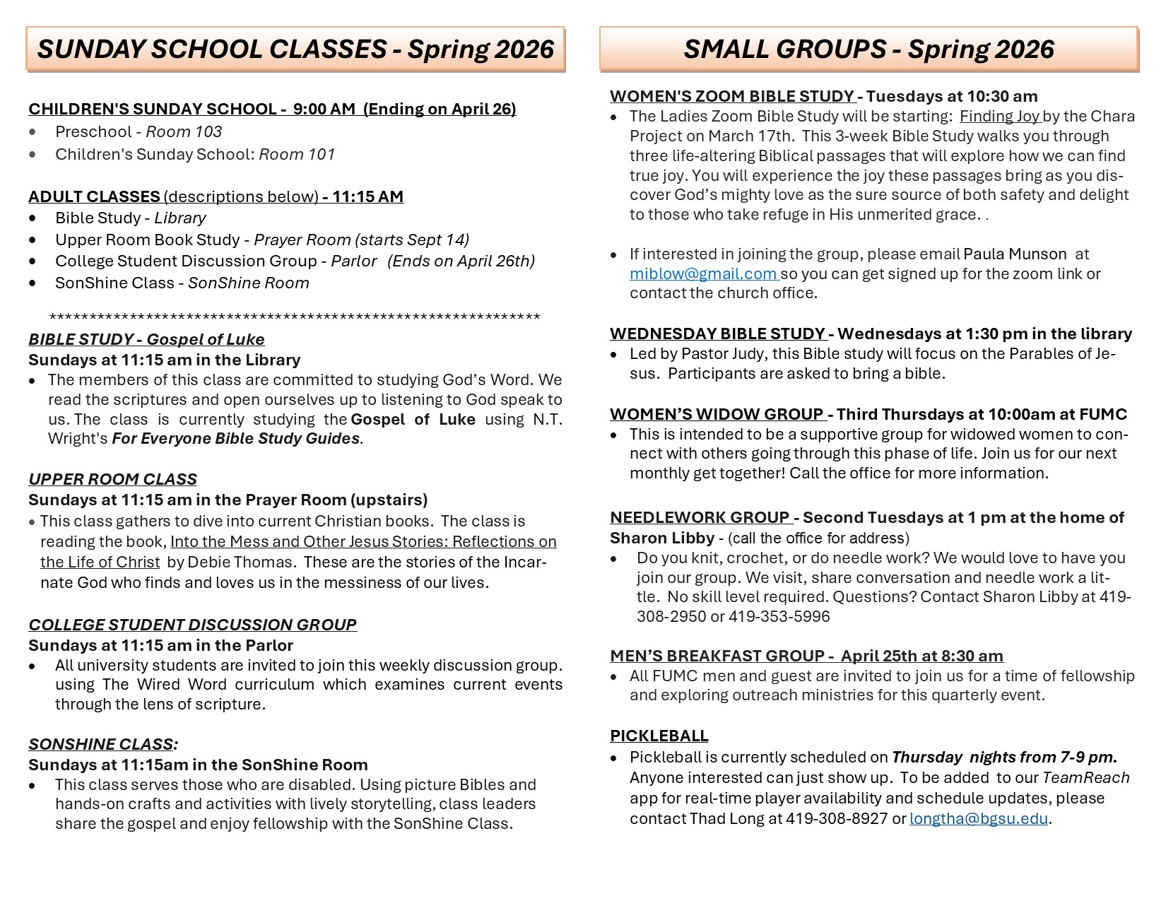 Sunday Morning CLasses