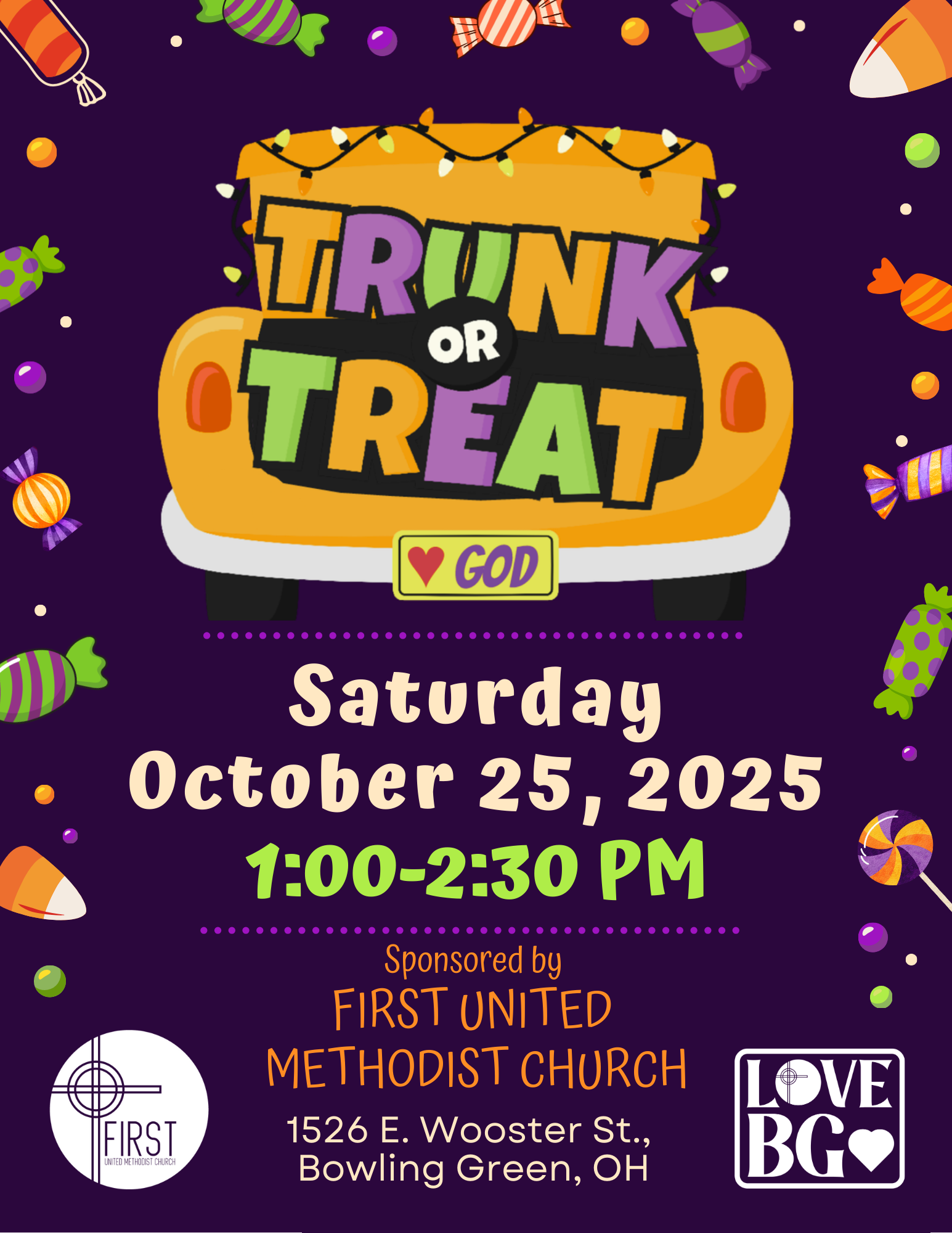 The Community is invited to our annual Trunk or Treat event. Saturday, October 25 from 1:00-2:30 pm in the back parking lot. Hope to see you there!